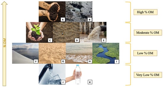 3.2. Samples with Moderate OM Content (Agricultural Soils, Sediments, and Wastewater)