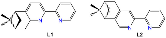 Structures of the ligands (−)-5,6- pinene bipyridine (L1) and (−)-4,5-pinene bipyridine (L2).