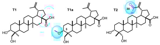- Castro, M.J.; Richmond, V.; Faraoni, M.B.; Murray, A.P. Oxidation at C-16 enhances butyrylcholinesterase inhibition in lupane triterpenoids. Bioorg. Chem. 2018, 79, 301–309. [Google Scholar] [CrossRef]