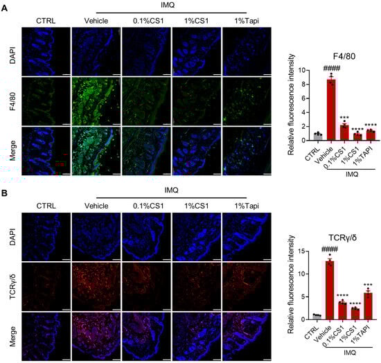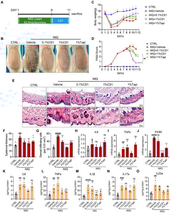 2.3. CS1 Attenuates IMQ-Induced Psoriasis-Like Phenotype in Mice