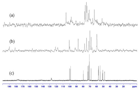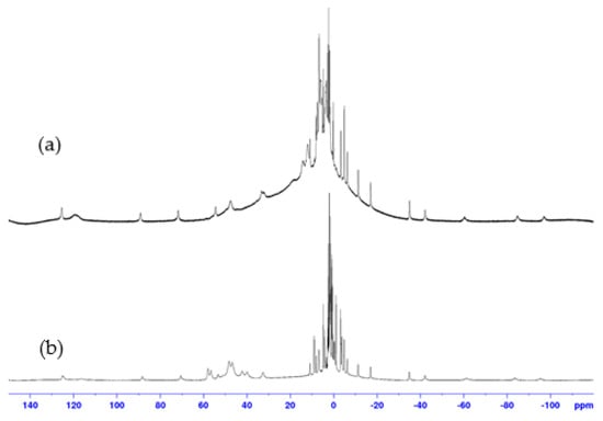 13C NMR spectra confirmed these results (Figure 5). No signal was observed outside the range of conventional 13C chemical shifts; however, a significant line broadening was observed in the spectra of the complexes compared to those of pure ligand 9, supporting the formation of the paramagnetic cobalt(II):9 complexes. Due to the lack of relevant results in 2D NMR, caused by a weak signal-to-noise ratio resulting from the paramagnetic effect of cobalt(II), the assignment of 1H (and 13C) signals could not be achieved, hindering a precise structural elucidation.