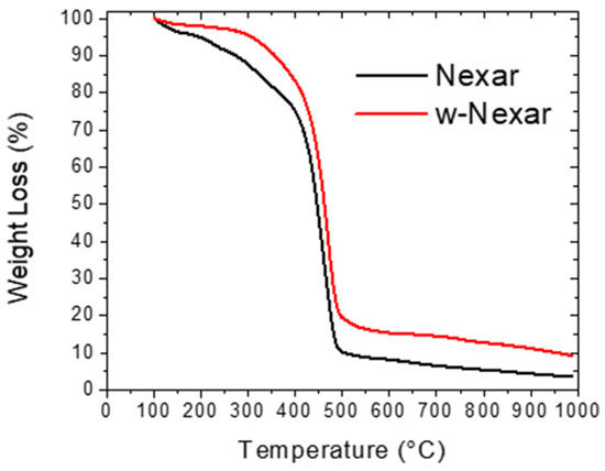 Figure 3 reports the TGA curves of both commercial and washed Nexar films.