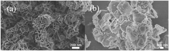SEM image of (a) MgAl LDH and (b) CaAl LDH.