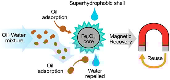 The use of superhydrophobic magnetic nanomaterials in oil–water separation is a promising direction in the field of wastewater treatment and oil spill response (Figure 2).