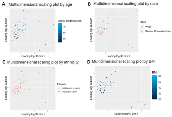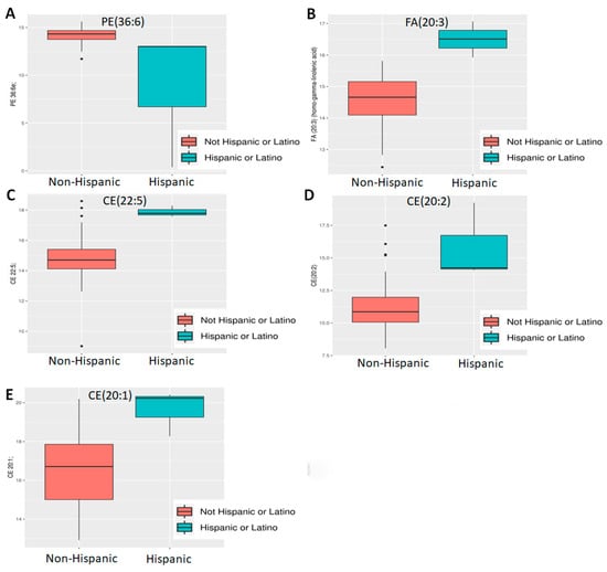2.2. Ethnicity and BMI Determine the Expression of Differentially Expressed Lipids in Prostatectomy-Derived Tissues from Patients with PCa