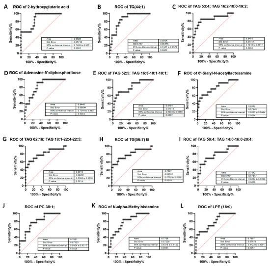 | 9.87_870.75 | TAG 52:5; TAG 16:3–18:1–18:1; | 1.11 | 14.18 | 4.86 × 10−5 | 0.002 |