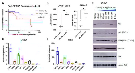 Hairston, D.W.S.; Sridharan-Weaver, S.; Gandhi, A.; Batra, N.; Durbin-Johnson, B.P.; Dall’Era, M.A.; Ghosh, P.M. The Oncometabolite 2-Hydroxyglutarate Is Upregulated in Post-Prostatectomy PSA Recurrence of Prostate Cancer: A Metabolomic Analysis. Molecules 2025, 30, 3316. https://doi.org/10.3390/molecules30163316