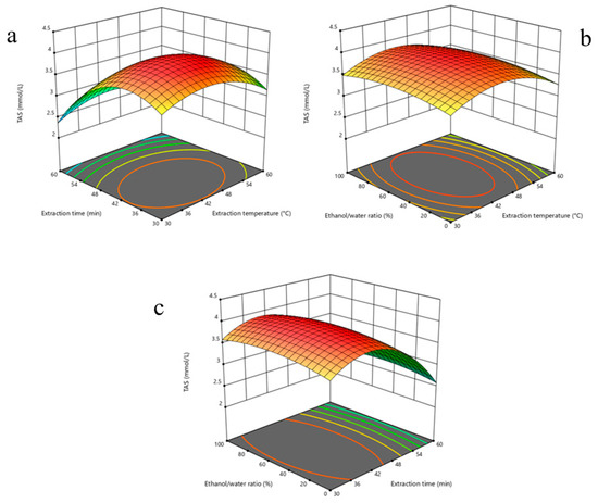 | Experiment Number | Extraction Temperature (°C) | Extraction Time (min) | Ethanol/Water Ratio (%) | TAS (mmol/L) |