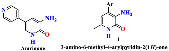 3-Aminopyridin-2(1H)-one derivatives have attracted significant interest due to their promising biological activity [10,11]. For example, the drug Amrinone (5-amino-[3,4′-bipyridin]-6(1H)-one) is an inhibitor of pyridine phosphodiesterase 3 and has a cardiotonic and vasodilating effect (Figure 1) [12]. Many other derivatives of 3-aminopyridin-2(1H)-one also exhibit antiviral activity, including against the AIDS virus [13,14]. The presence of an “integrated” amino acid fragment renders them attractive scaffolds for the synthesis of new derivatives with promising biological applications [15,16,17,18,19,20].