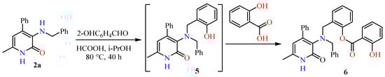 To 1 mmol of 3-(benzylamino)-6-methyl-4-phenylpyridin-2(1H)-one 2a were added 5 mmol of salicylic and 5 mmol of formic acid. The reaction mixture was boiled in 10 mL of isopropyl alcohol for 24 h and then poured onto ice. The resulting precipitate was filtered off, washed with water, and recrystallized from 2-propanol.