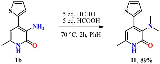 Methylation reaction of 3-amino-6-methyl-4-(thiophen-2-yl)pyridin-2(1H)-one 1b by the Eschweiler–Clarke reaction.