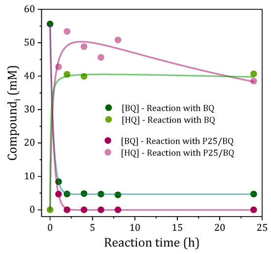 2.2. Reaction Profiles with BQ and P25/BQ as Photocatalyst