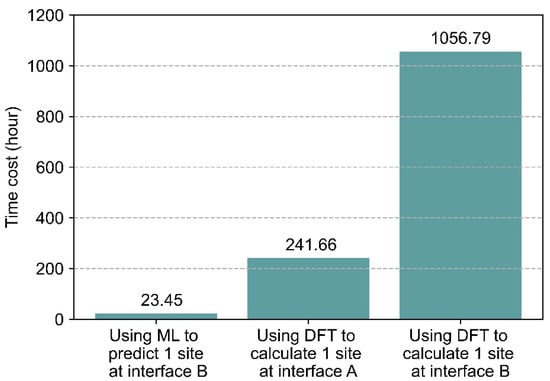 Figure 7. Comparison of computational cost for ML to predict E S e g at one site in interface B with computational cost to calculate E S e g at one site in interface A and B using DFT calculations.