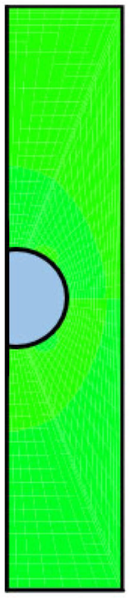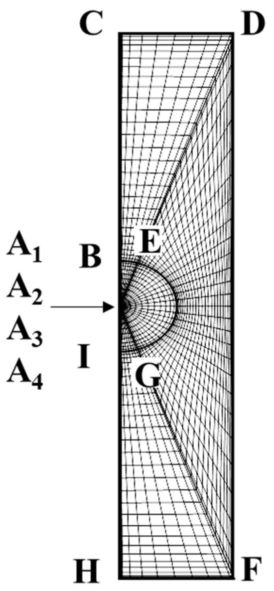 The mesh is further transformed to the corresponding rectangular region (x, y) as shown in Figure 9 via a conformal mapping. The details can be found elsewhere [30].