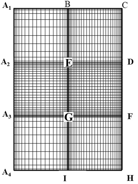 Orthogonal mesh diagram of sub-regions after conformal mapping.