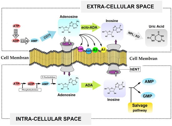 - Yegutkin, G.G. Enzymes Involved in Metabolism of Extracellular Nucleotides and Nucleosides: Functional Implications and Measurement of Activities. Crit. Rev. Biochem. Mol. Biol. 2014, 9238, 473–497. [Google Scholar] [CrossRef] [PubMed]