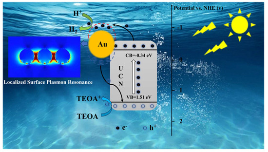 Yu H, Wei Z, Gao Q, Qu P, Wang R, Luo X, Sun X, Li D, Zhang X, Liu J, et al. Gold Nanoparticles-Functionalized Ultrathin Graphitic Carbon Nitride Nanosheets for Boosting Solar Hydrogen Production: The Role of Plasmon-Induced Interfacial Electric Fields. Molecules. 2025; 30(16):3406. https://doi.org/10.3390/molecules30163406