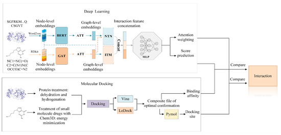 The overall workflow of our interpretable DL and molecular docking framework is illustrated in Figure 5. The framework first employs our DL model to rapidly screen and select candidate ligands with high predicted affinity, followed by molecular docking to evaluate their binding modes and interaction strengths. By integrating these two approaches, the framework aims to reduce the computational cost of docking while improving the predictive accuracy and interpretability of the DL model.