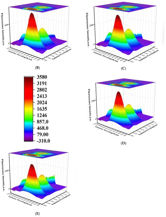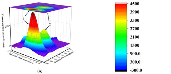 2.6. Three-Dimensional Fluorescence Spectra
