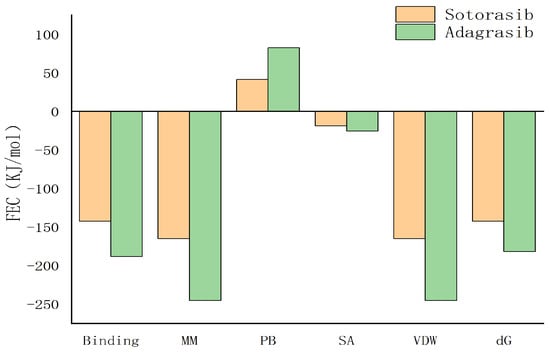 As shown in Figure 12, the contribution of amino acid residues to binding energy can be decomposed as follows: positive values above the coordinate axis indicate positive contributions to binding energy (hinder protein-ligand binding), such as polar solvation energy; negative values below the axis favor ligand binding, including electrostatic interactions, surface adsorption free energy (SASA), van der Waals forces, and binding energy. Both ligands primarily rely on hydrophobic interactions.