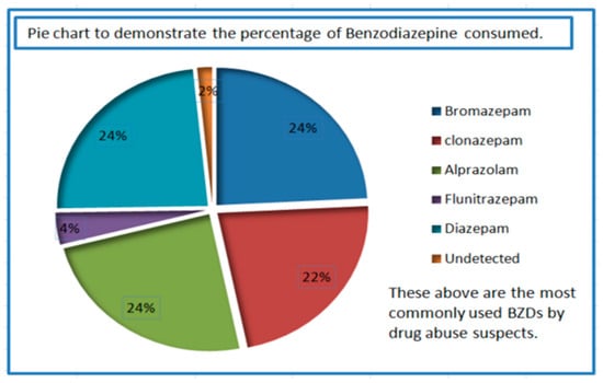 Graphical representation in terms of percentage of benzodiazepines used by the suspects.