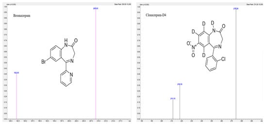 Product ion mass spectra of Bromazepam and Clonazepam-D4.