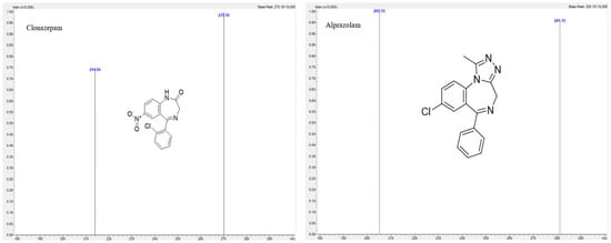 Product ion mass spectra of Clonazepam and Alprazolam.