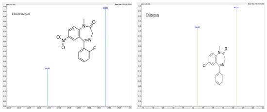 Product ion mass spectra of Flunitrazepam and Diazepam.
