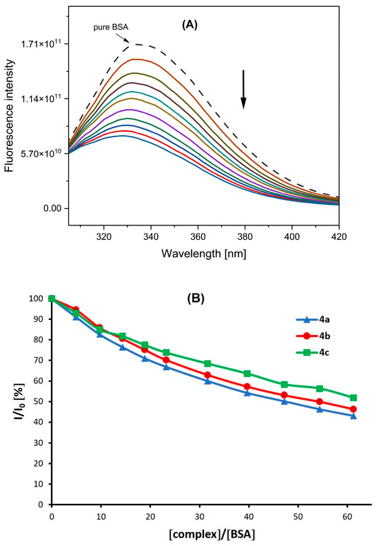 2.6. Interaction of Complexes Studied with BSA