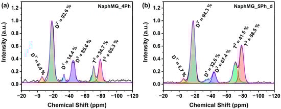 Integrated 29Si CP MAS NMR of (a) NaphMG_4Ph and (b) NaphMG_5Ph_d.