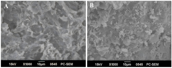 The SPP sample was sprayed with gold by a gold spraying instrument, and the microstructure of the sample was observed by SEM (Su8010 scanning electron microscope, Hitachi Instruments Co., Ltd., Chiyoda City, Japan).