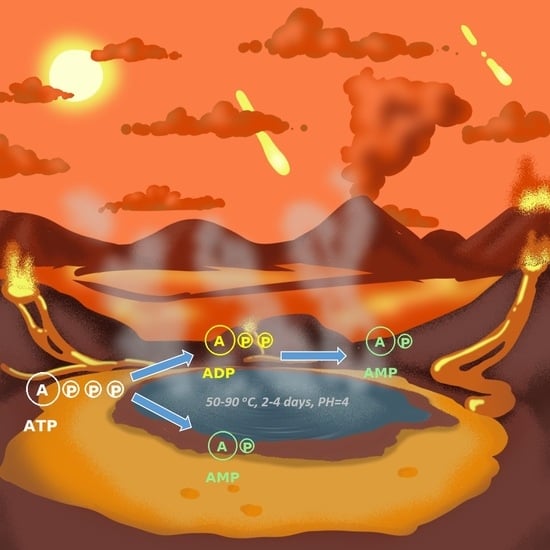 - Schwartz, A.W.; Ponnamperuma, C. Phosphorylation of adenosine with linear polyphosphate salts in aqueous solution. Nature 1968, 218, 443. [Google Scholar] [CrossRef]