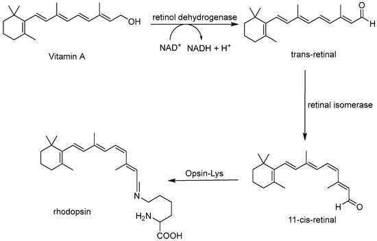 - Saari, J.C. Vitamin A and Vision. Subcell Biochem. 2016, 81, 231–259. [Google Scholar] [PubMed]
