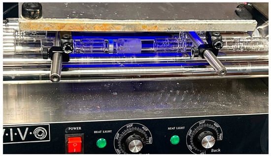 The resulting black TiO2 catalyst was washed in situ by flowing deionized water through the quartz tube using a peristaltic pump (Gilson, Inc., Middleton, WI, USA). After washing, the catalyst was dried by connecting the tube to a compressed air outlet until fully dry.