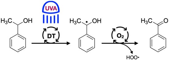 Oxidation of 1-phenylethanol in the presence of UVA light and DT photocatalysts.
