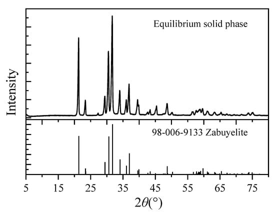 X-ray diffraction pattern of the equilibrium solid phase (Zabuyelite is a natural lithium carbonate mineral).