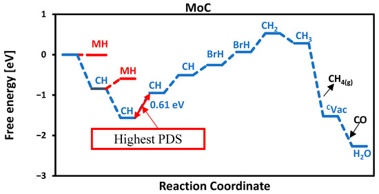 Free energy diagram of MoC. The highest PDS is between CH and CH.