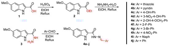- Zhang, J.; Liu, T.; Chen, M.; Liu, F.; Liu, X.; Zhang, J.; Lin, J.; Jin, Y. Synthesis and Biological Evaluation of Indole-2-carbohydrazide Derivatives as Anticancer Agents with Anti-angiogenic and Antiproliferative Activities. ChemMedChem 2018, 13, 1181–1192. [Google Scholar] [CrossRef]