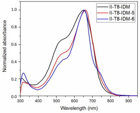 3.2.6. Synthesis of 2,2′-((2Z,2′Z)-((((E)-1,1′-Bis(2-Octyldodecyl)-2,2′-Dioxo-[3,3′-Biindolinylidene]-6,6′-Diyl)Bis(4-Octylthiophene-5,2-Diyl))Bis(Methaneylylidene))Bis(3-Oxo-2,3-Dihydro-1H-Indene-2,1-Diylidene))Dimalononitrile (II-T8-IDM)