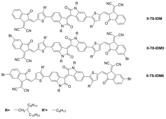 Novel Isoindigo-Based Organic Semiconductors End Capped with 1,1-Dicyanomethylene-3-Indanone: Effect of the Bromination and Position of Bromine Substituents on the Chemical–Physical and Electrical Properties