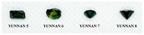 The four tourmaline samples from Yunnan analyzed by LA-ICP-MS. The size of the gems is about 8–11 mm.