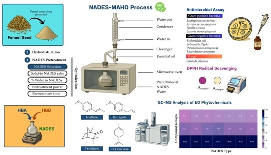 Green NADES-Based Pretreatment Combined with Microwave-Assisted Hydrodistillation for Enhanced Fennel Essential Oil Production