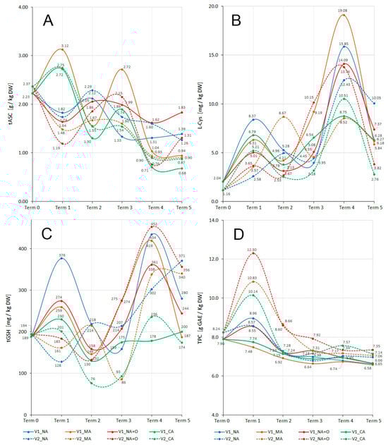 2.2.2. Thiol Compounds: L-Cysteine (L-CYS) and Total Glutathione (tGSH)