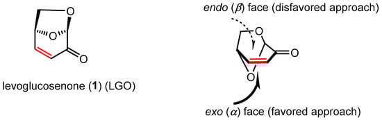 (−)-Levoglucosenone (LGO) (1) and presentation of two competitive approaches to the activated C=C bond.