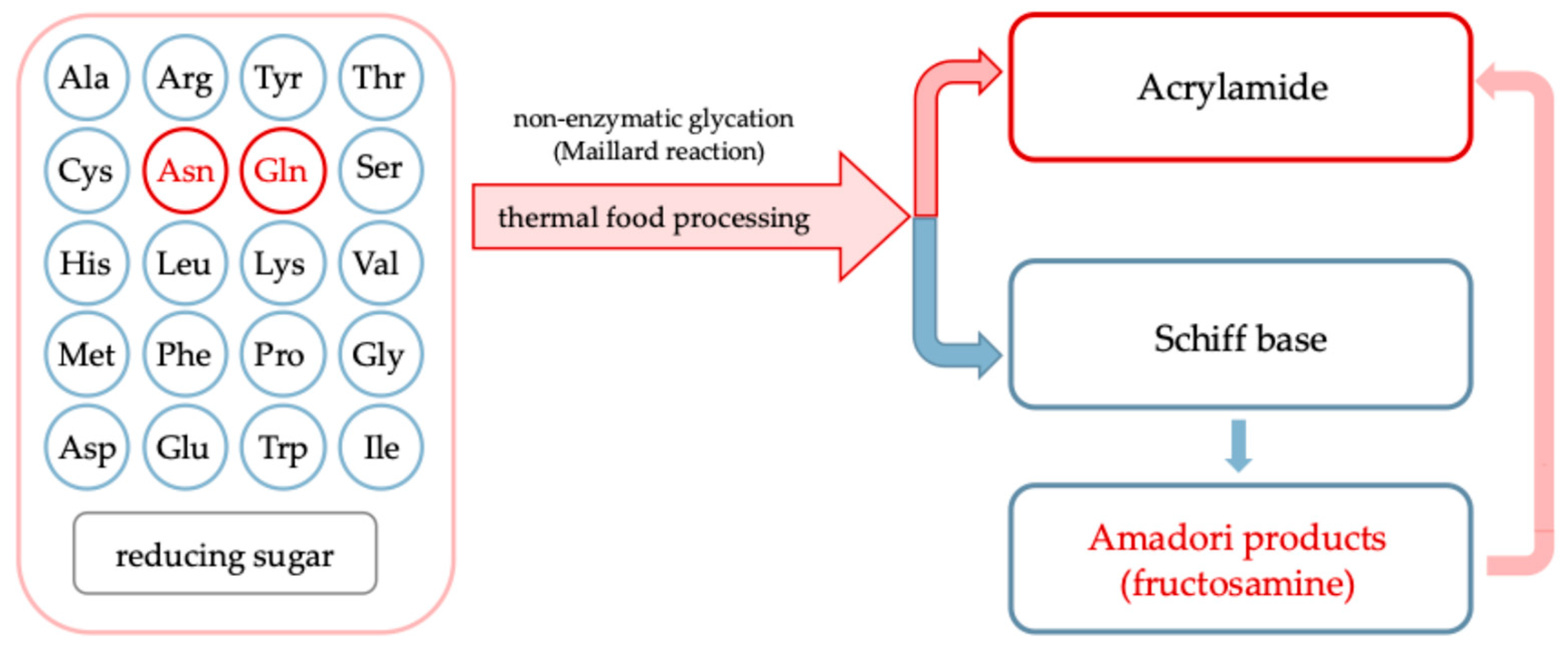- Mottram, D.S.; Wedzicha, B.L.; Dodson, A.T. Acrylamide Is Formed in the Maillard Reaction. Nature 2002, 419, 448–449. [Google Scholar] [CrossRef] [PubMed]