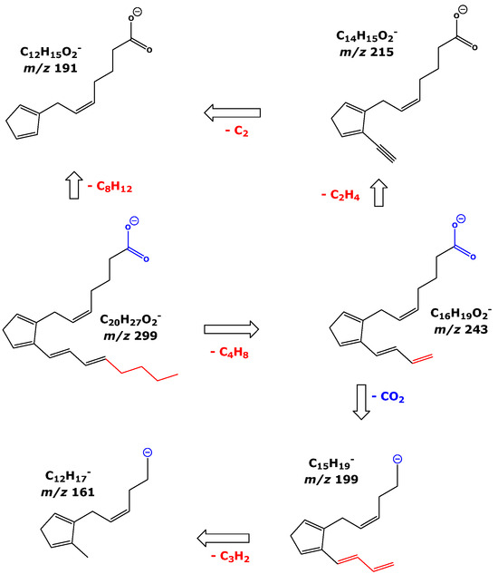 2α and its dinor-dihydro metabolite complemented this analysis. By means of these datasets, the 32-eV CID behavior and the formation of 19 product ions from [M-PFB]