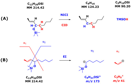 2α as the isomers with the greatest disagreement. Based on these data, CID fragmentation mechanisms were proposed. Neutral losses of TMSOH are prominent intramolecular redox-based elimination reactions that lead to the formation of C=C-bonds within the cyclopentane ring and in the β-chain of F
