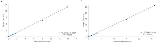 Validation of linearity: (A) Metanephrine. (B) Normetanephrine.