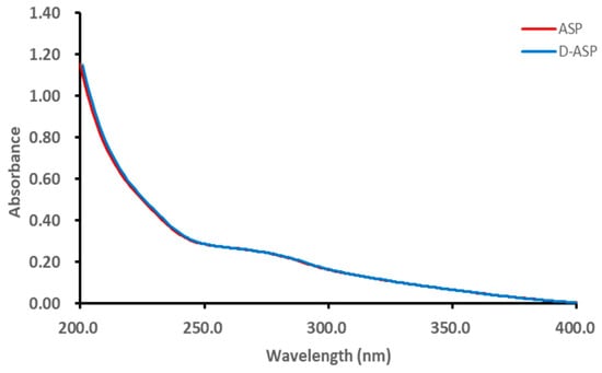 The FT-IR spectra of ASP and D-ASP, ground with KBr in a 1:100 ratio, were obtained using an IR Affinity Fourier Transform Infrared Spectrometer (Shimadzu, Japan). The measurements were carried out via the KBr-disk method, with a resolution of 0.1 cm−1, over a scanning range from 4000 cm−1 to 400 cm−1.