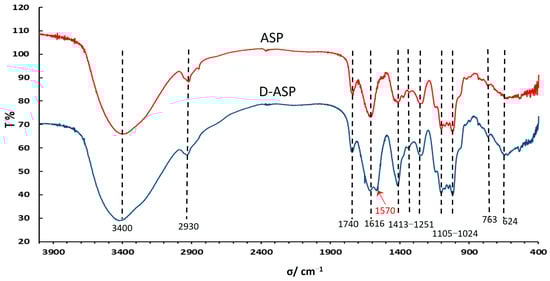 Fourier transform-infrared (FT-IR) spectra of ASP and D-ASP polysaccharides.